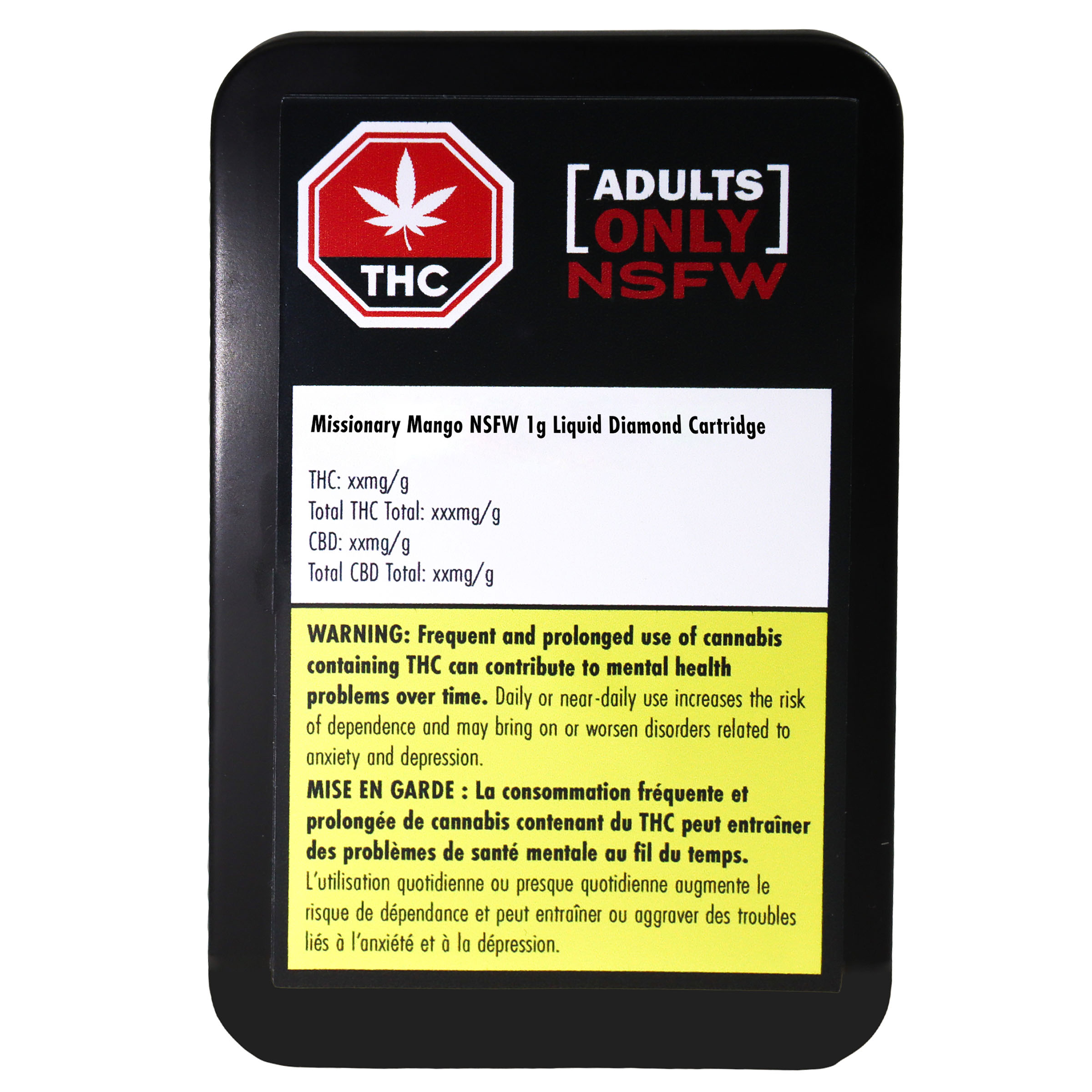 Missionary Mango NSFW Liquid Diamond Cartridge, brought to you by Adults Only, is here to prove that missionary doesnt have to be boring. Derived from the Mango Kush strain, this Indica leaning Hybrid 510-thread vape is packed with insanely potent liquified THC diamonds that boast sultry, sweet, and exotic mango flavours. All Adults Only NSFW Liquid Diamond vapes are crafted using our advanced, industry-leading BHO extraction process and enhanced with added botanical terpenes. You wont find any added solvents, pigments, fillers, or waxes in this premium extract.