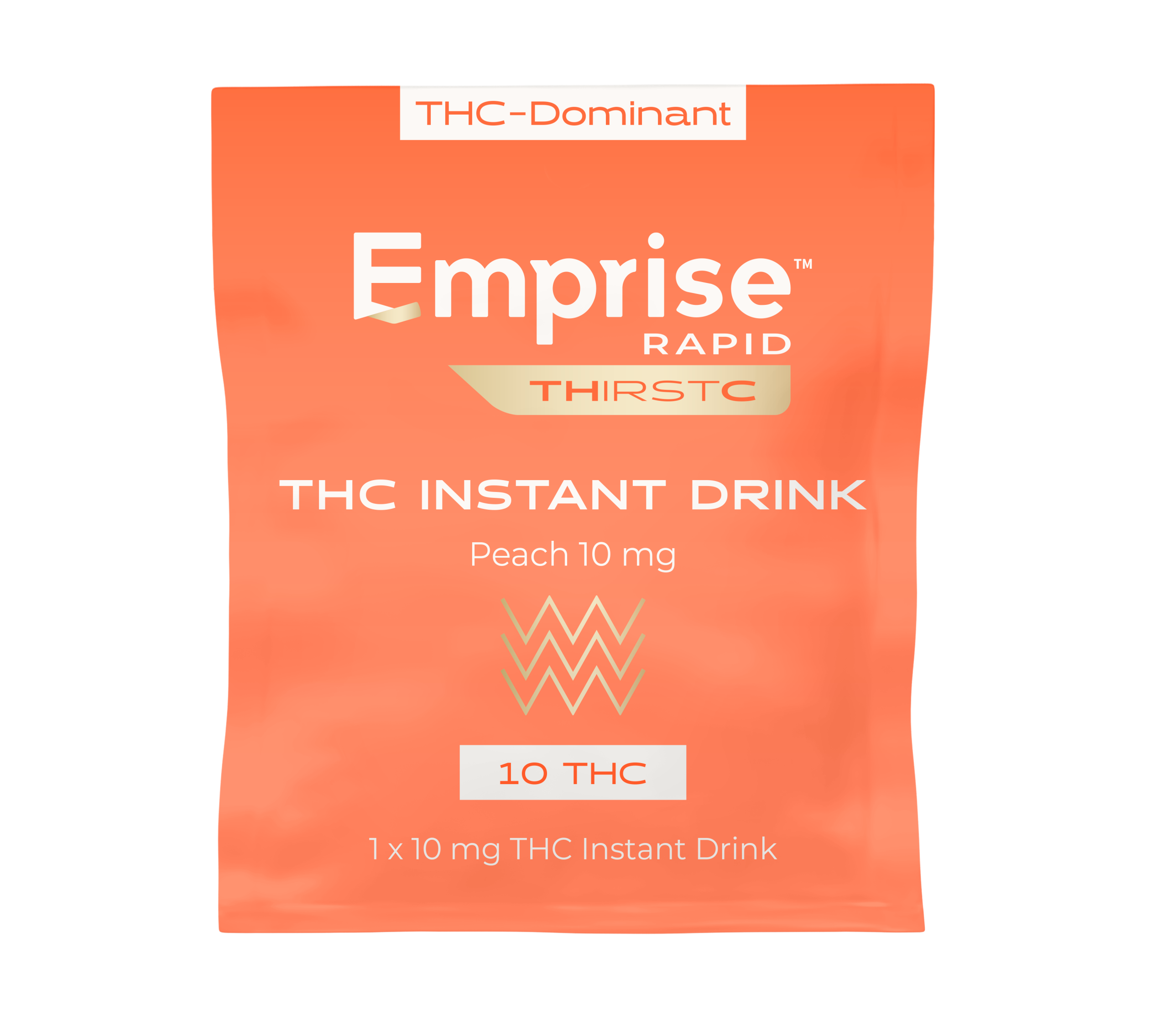 Emprise Rapid THirstC Peach 10mg THC Instant Drink is ready when you are, add to 250ml of Water and consume. Each sachet contains 10mg of Advanced Nano THC Emulsion that has a rapid onset in as little as 10-15 minutes.