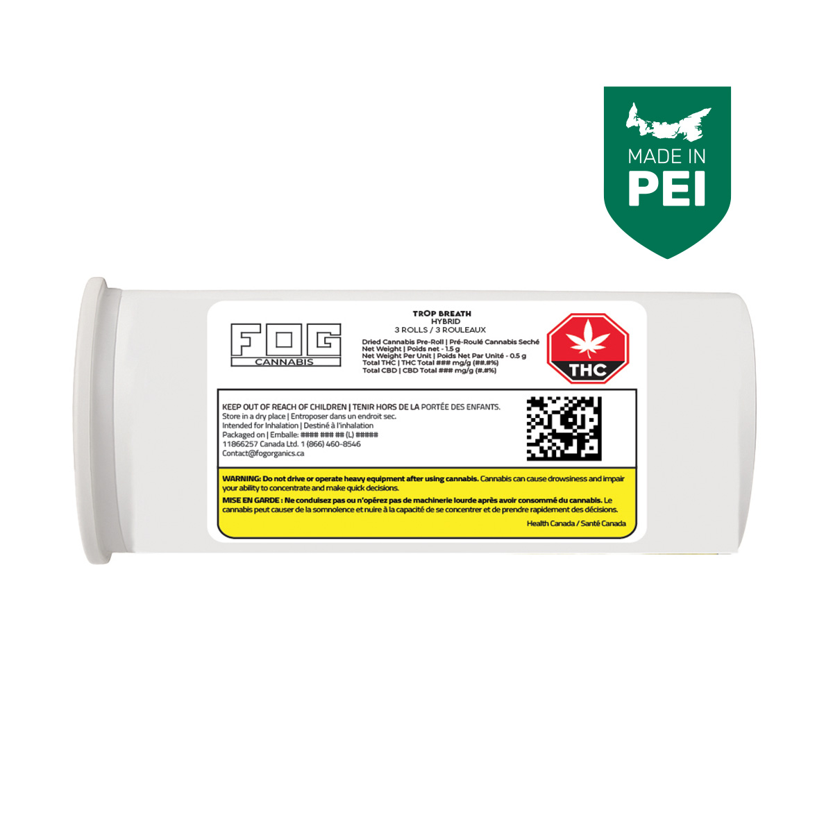 This Trop Breath Pre-Roll product is grown indoors on the west coast in small batches. Trop Breath is a hybrid high in THC and a negligible amount of other cannabinoids. The terpene profile is dominated by Myrcene mixed with limonene and Caryophyllene which presents itself as dank and citrus. This cannabis product is made from the prime buds harvested from the plant which is wet machine trimmed, tray dried, and bag cured. packaged in a plastic tube.