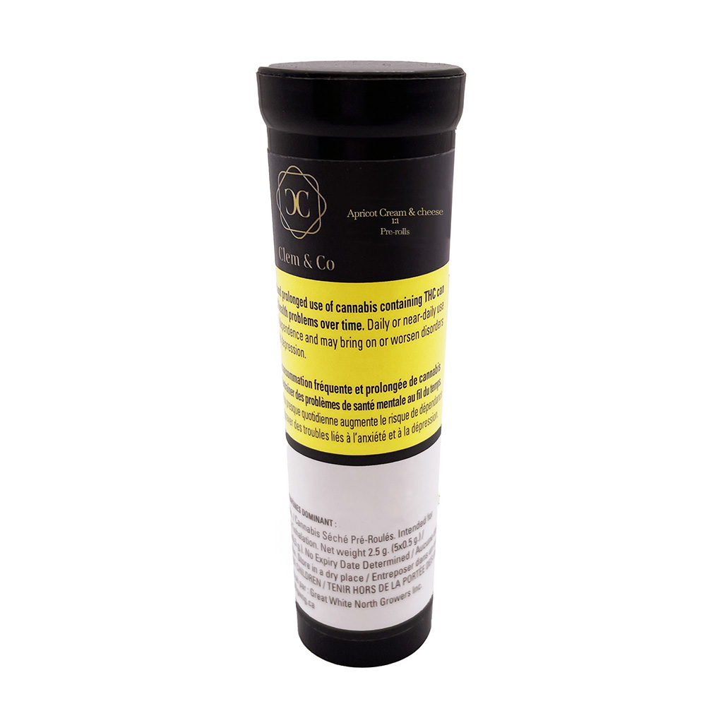 Clem and Cos Apricot Cream and Cheese 1:1 Pre Rolls 5 x 0.5g offers a balanced 7-15% THC and 10-18% CBD balance with sweet apricot and creamy cheese aromas. Relaxing and versatile. Features Myrcene, Caryophyllene, and Pinene. Hang dried, hand trimmed. Genetics: Seedsman CBD #1 x UK Cheese.