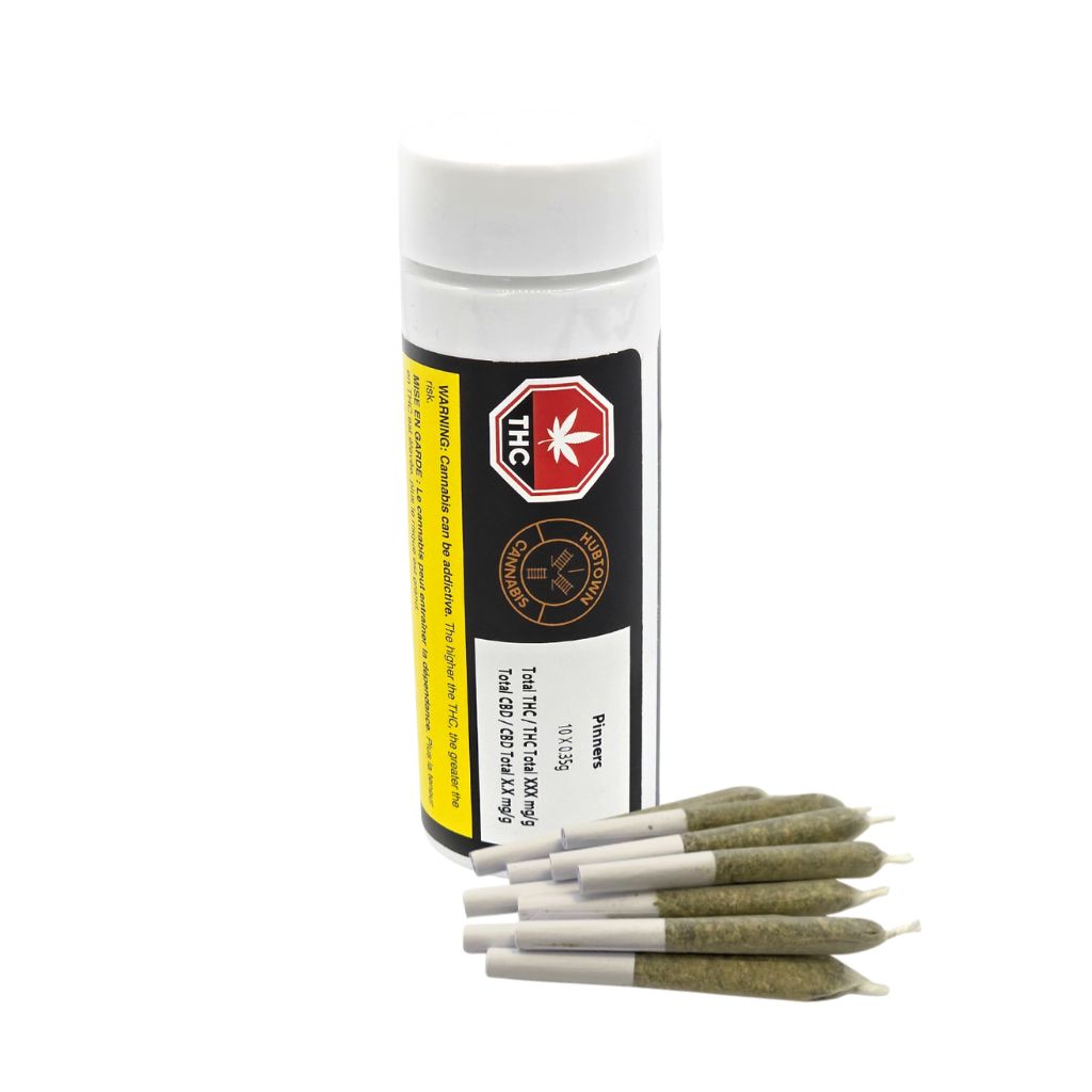Hubtown Pinners are a high-THC indica blend with a THC range of 26-32%. Each 0.35g pre-roll is filled with premium milled flower, delivering craft quality in a convenient 10-pack. As a rotating blend, terpene content and aroma will vary, but every batch features indoor-grown, hang-dried, hand-trimmed flower cured for 28 days for optimal flavour and consistency. Designed for convenience without compromise, Pinners combine portability with true craft standards.
