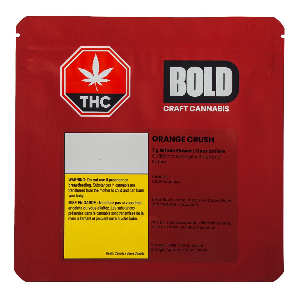 Orange Crush is a sativa dominant cultivar bred from California Orange and Blueberry. This cultivar produces dense, resinous buds with pronounced orange, sweet citrus, and light diesel aroma characteristics. The primary terpenes include terpinolene, limonene, and pinene. THC content ranges from 28 to 33% THC. Orange Crush is indoor grown in small batches, hang dried, slow cured, and hand trimmed to preserve flower structure and aromatic integrity.