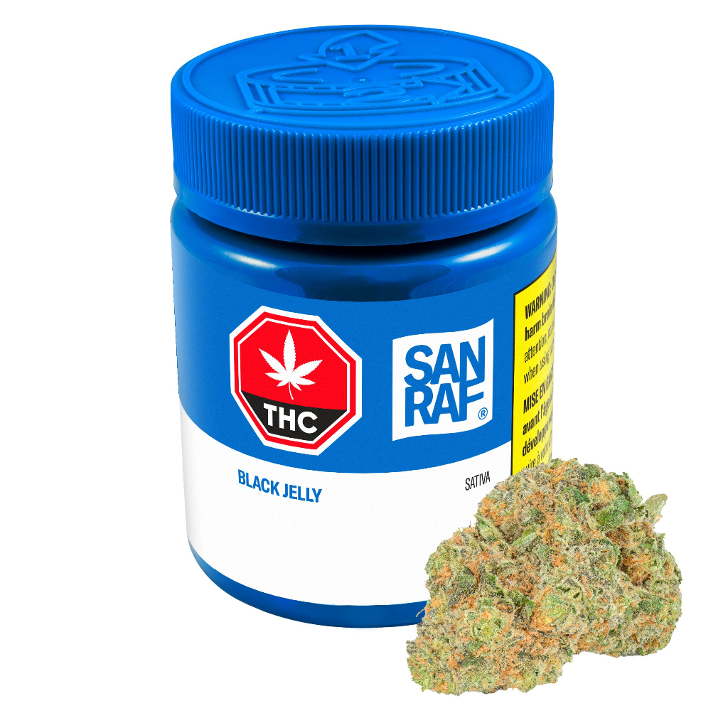 Black Jelly by San Raf is a premium, indoor-grown strain developed from Alien Cake 3030 genetics. What makes this sativa so special is its one-of-a-kind aroma of licorice and anise with hidden notes of sweet fruit. Its dense buds come impressive in size and shape with eye-catching green and orange hues, topped with a coat of sparkling trichomes. Cultivated under the highest quality standards, San Raf flower is hang-dried, hand-finished, and hand-packaged with a humidity packet.