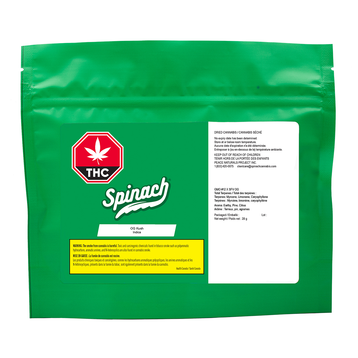 For the first time, the remake is going to be better than the original. Spinach OG Kush is our new take on a classic strain making for a super flavourful and potent cultivar. A cross between GMO #12 and SFV OG, get earthy, piney, and citrusy flavours and aromas pumped up from terps like myrcene, limonene, and caryophyllene. This powerhouse cross doesnt only make for a flavourful strain, it pumps up the potency to insane levels and makes it the newest OG experience you wont want to miss.