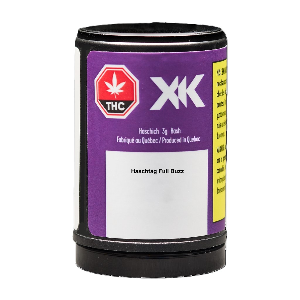 XK Haschtag Full Buzz 3g offers a Montreal black hash experience like no other. Combining the legendary malleability of the XK Haschtag Collection with the entourage effect of CBD, this unique 2:1 hash offering 30% THC and 12-18% CBD will surprise with its amazing highs, premium single strain offerings on rotation, and high cannabinoids content. Packaged in a glass jar with a silicon seal for ultimate freshness.