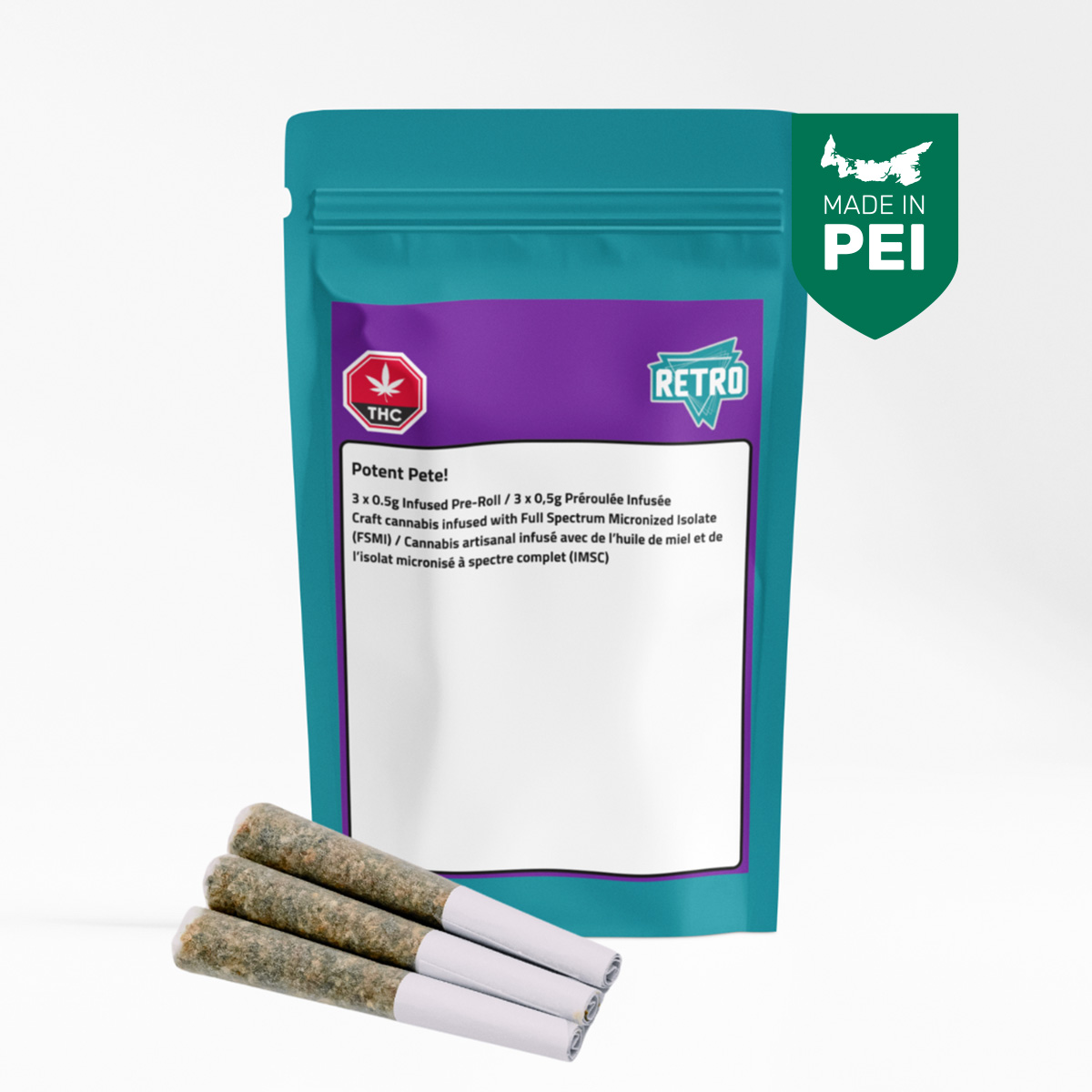 At Retro, were passionate about bringing you the highest quality cannabis products on the market. Introducing Potent Pete, our latest offering in the infused pre-roll category. Infused with full-spectrum micronized THC isolate, and with terpenes of Cerdrene, Farnesene and Humulene. So, whether youre looking for a potent, flavorful smoking experience or simply want to indulge in the ultimate cannabis experience, Potent Pete is the perfect choice. With its potent punch of 55% and easy-to-use pre-roll format, its the ultimate indulgence for cannabis enthusiasts everywhere. Try it today and experience the difference for yourself!