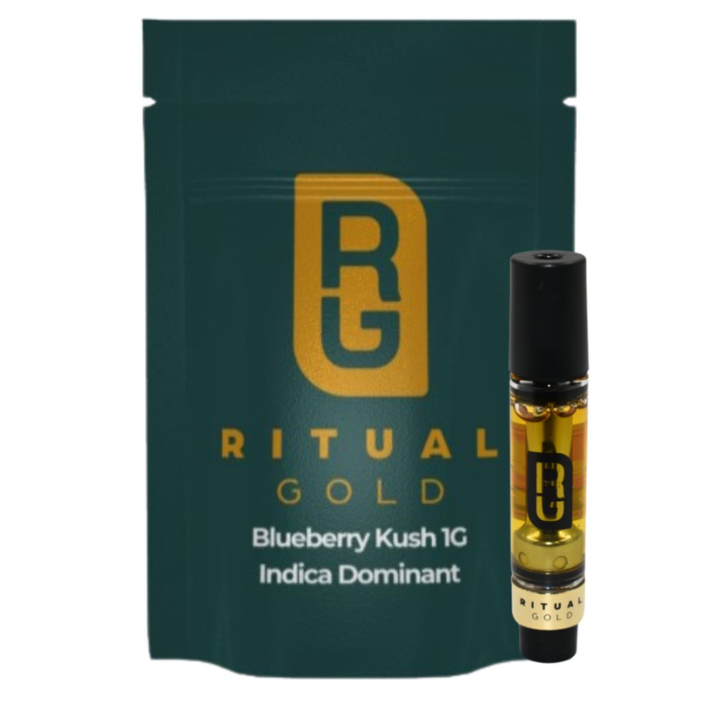 With THC levels ranging from 87-93% Ritual Gold Blueberry Kush strain delivers a smooth yet powerful distillate experience, crafted for consistency and refinement. Infused with botanically derived terpenes, this classic profile is ripe blueberry layered over earthy kush undertones. This is a true classic reimagined in premium distillate, curated terpenes and sleek convenience come together to create a true gold standard experience.