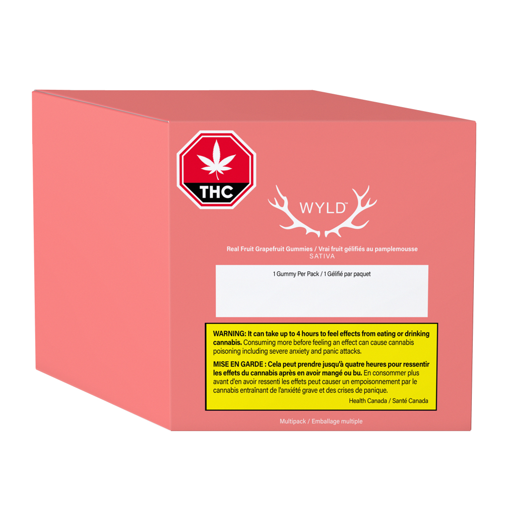 Wyld Grapefruit Sativa Enhanced THC:CBG:CBC gummies are a 1:1:1 product, made sustainably using real fruit, botanical terpenes and natural flavours. Each gummy contains 10mg THC, 10mg CBG and 10mg CBC, for a total of 100mg THC, 100mg CBG and 100mg CBC per pack. All Wyld gummies are packaged in a fully compostable pouch, and our recipes are formulated by food scientists to provide consistent experiences that taste amazing. Wyld gummies use sunflower lecithin to improve bioavailability and onset time and are made to be thermostable up to 55C, with a firm texture that doesn’t stick to your teeth. Each Wyld Grapefruit Sativa Enhanced gummy contains 10mg THC, 10mg CBG, and 10mg CBC combined with the terpenes limonene, valencene, beta-caryophyllen, alpha-pinene, and beta-pinene.