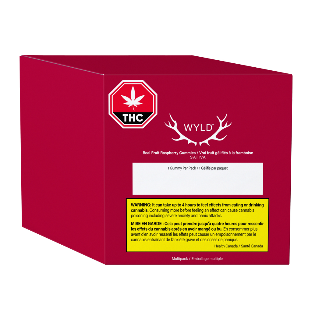 Wyld Raspberry Sativa Enhanced THC gummies are sustainably made using real fruit, botanical terpenes and natural flavours. Each gummy contains 10mg THC, for a total of 100mg THC per pack. All Wyld gummies are packaged in a fully compostable pouch, and our recipes are formulated by food scientists to provide consistent experiences that taste amazing. Wyld gummies use sunflower lecithin to improve bioavailability and onset time and are made to be thermostable up to 55C, with a firm texture that doesn?t stick to your teeth. Each Wyld Raspberry Sativa Enhanced gummy contains the terpenes limonene, valencene, beta-caryophyllene, alpha-pinene, and beta-pinene.